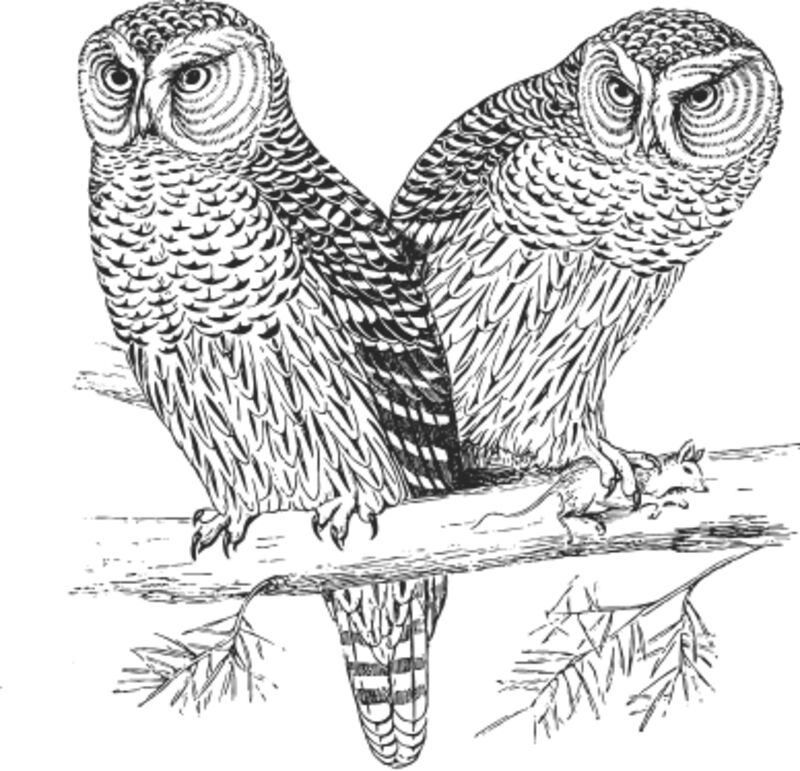 Two owls vintage print